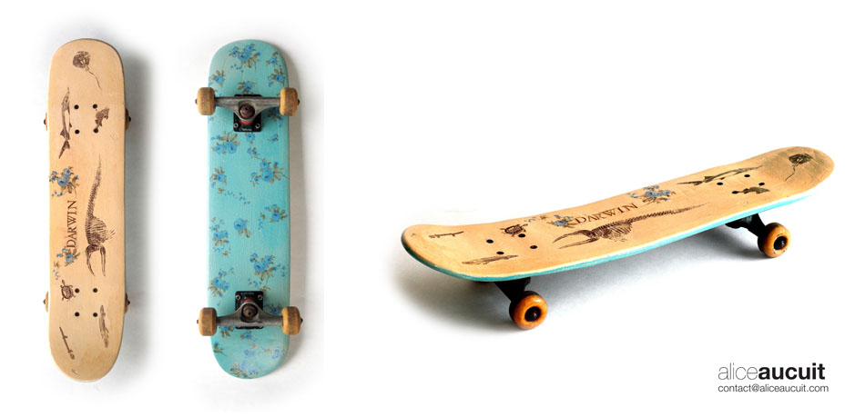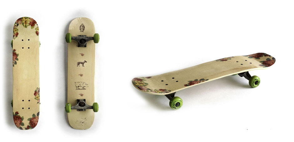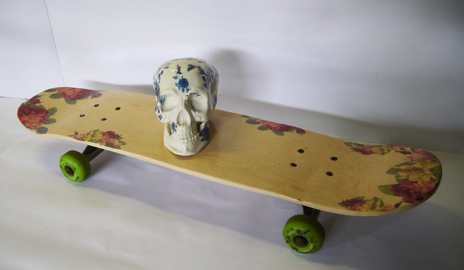 - Le skateboard ou planche à roulettes ici perd sa fonction d’objet de loisir pour prendre le statut de d’objet d’art.